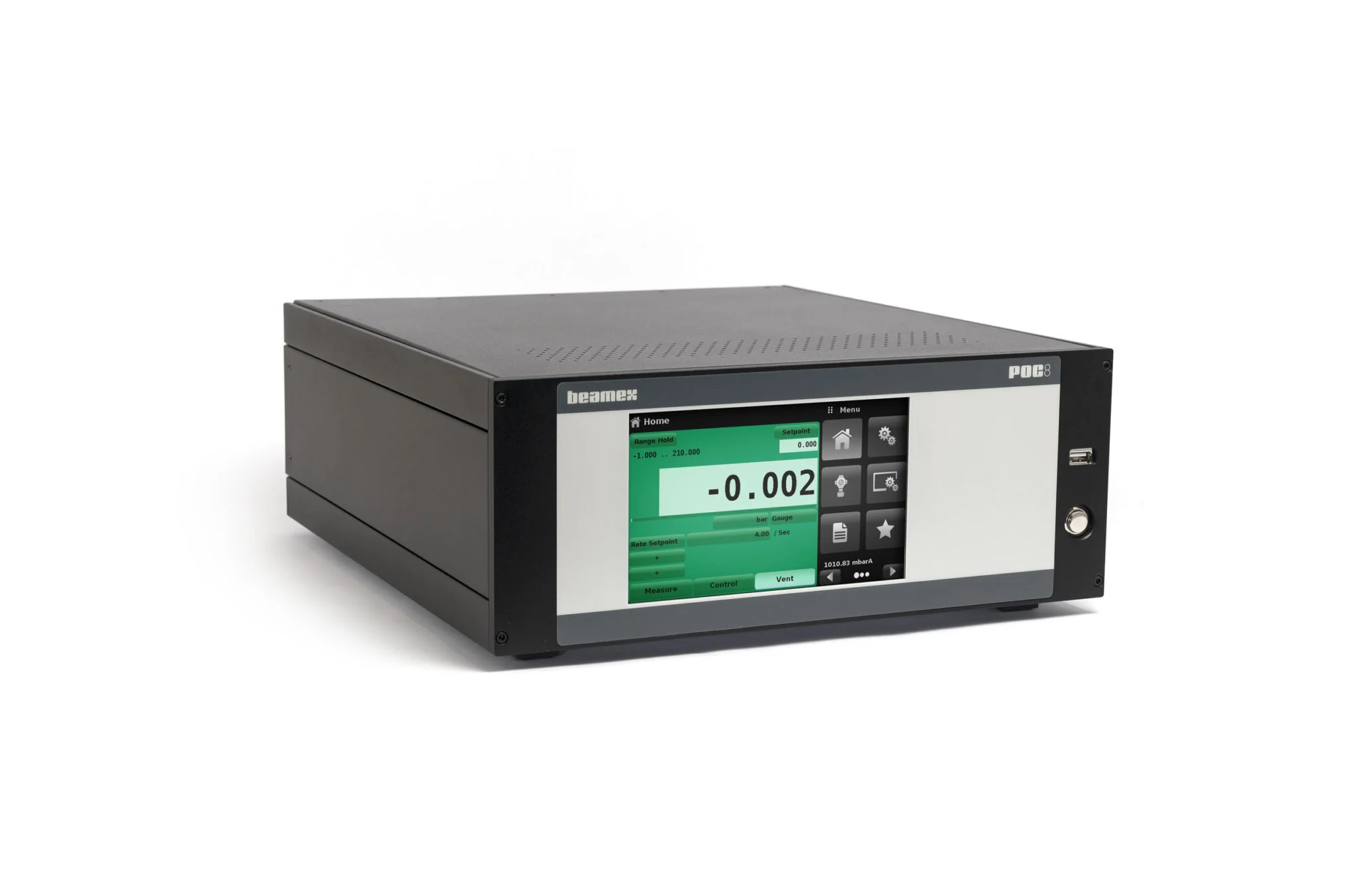 Le Beamex POC8 est un régulateur de pression automatique stable, précis et convivial qui fournit une sortie régulée depuis le vide jusqu’à 210 bars (3045 psi). Un POC8 peut être équipé de 1 ou 2 modules de mesure internes et d’un module barométrique. Le POC8 peut être monté en rack avec le système d’essais métrologiques et d’étalonnage modulaire Beamex CENTRiCAL ou en version transportable. Utilisé avec les calibrateurs de la famille Beamex MC6 et le logiciel de gestion de la métrologie Beamex, vous disposez d’une solution intégrée entièrement automatisée pour effectuer, documenter et gérer facilement les étalonnages de manière innovante, simple et efficace.